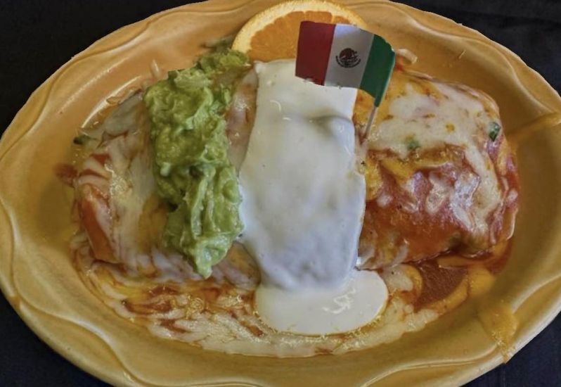 Our special this week is our Cinco de Mayo Burrito. It’s a giant burrito stuffed with a chile relleno, your choice of shredded chicken or shredded beef, beans, and rice. Topped with our delicious red sauce, cheese, sour cream, and guacamole. Yummy!